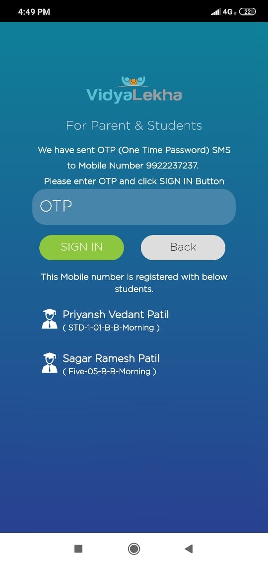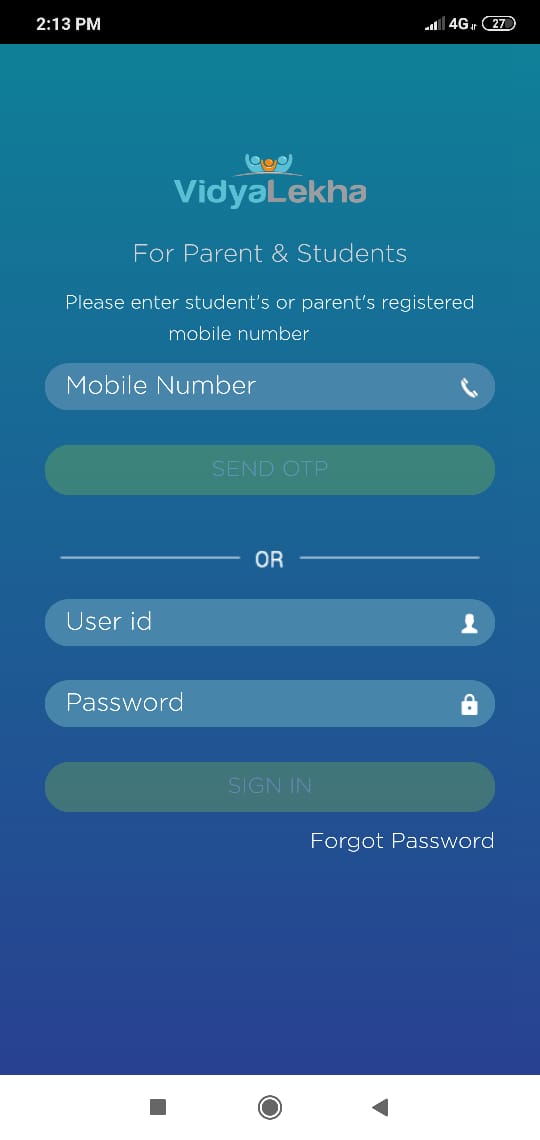 1. Install Vidyalekha Parent App from playstore Parent App Playstore Link